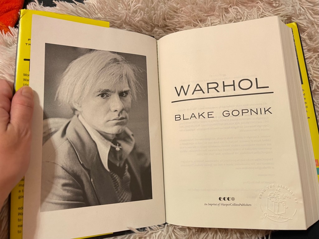 The Warhol biography was interesting to read, but was insanely lengthy. While I appreciated learning about intimate details of his life and influences, I did find myself often skimming through some fluff for sure. I definitely have some critiques about the way the author wrote, specifically in the way he acted as if he was the sole holder of all the correct information. He often phased things like, ‘Andy was described as X, Y, and Z by his closest friends, but it was actually quite the opposite!’ – which was really annoying. Andy was a complex human who can exist in spaces of contradiction and hypocrisy, and I would be reluctant to make such solid statements about him, ever.